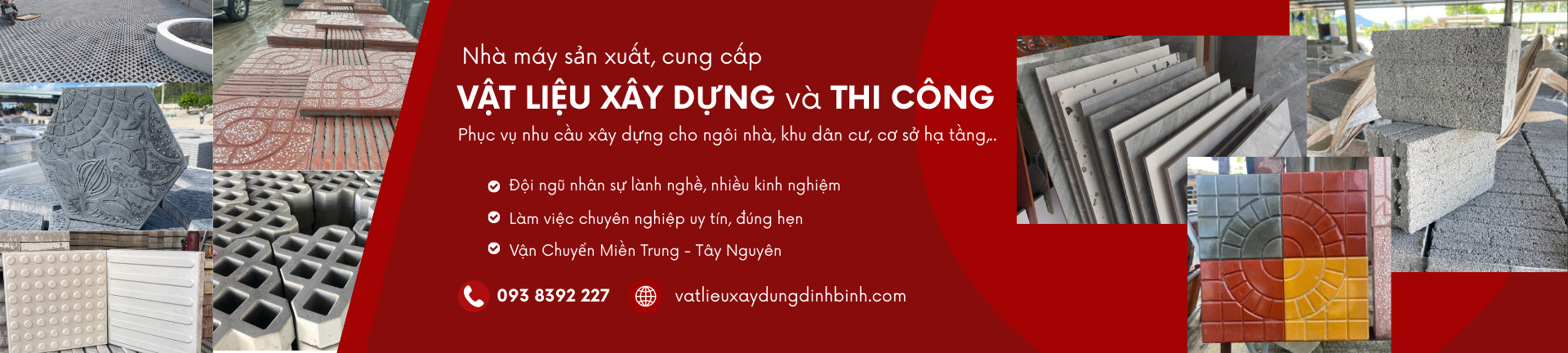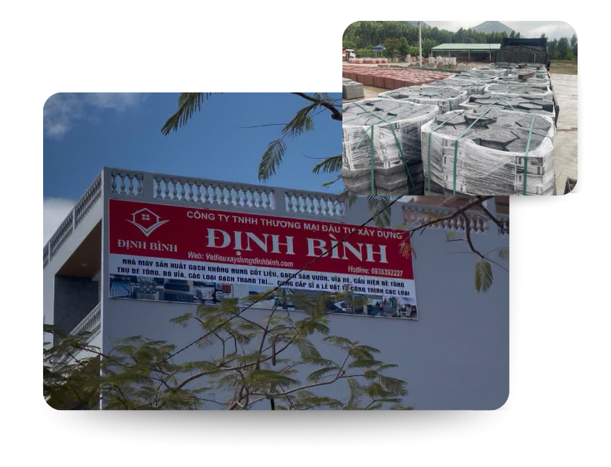 Vật liệu xây dựng Định Bình là nhà sản xuất và cung ứng vật liệu xây dựng uy tín tại Bình Định, hoạt động từ năm 2019. Công ty chuyên sản xuất gạch không nung, gạch terrazzo, gạch tự chèn, gạch bông gió mỹ thuật, hàng rào bê tông ly tâm và cung cấp vật liệu xây dựng cho nhà ở dân dụng, hạ tầng, dự án khu đô thị tại Bình Định và khu vực miền Trung – Tây Nguyên.
